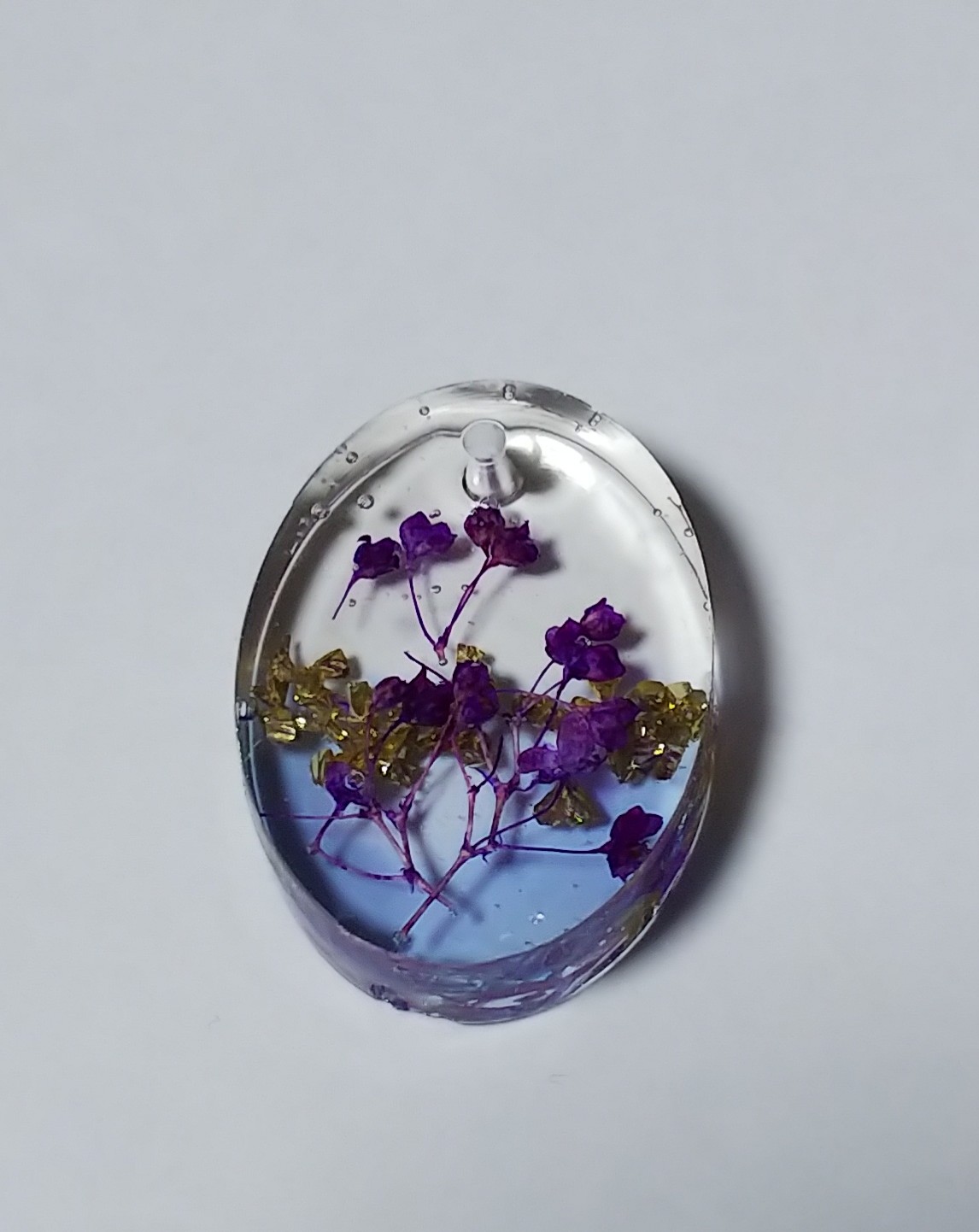 穴あきのペンダントトップ用の型で作ってみました。わりと丁寧に作業したんですけどやっぱり気泡がもりもりですね~あとちょっと乾燥不足で裏面にレジンを塗り足したらガタガタになりましたw